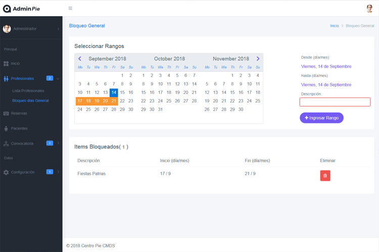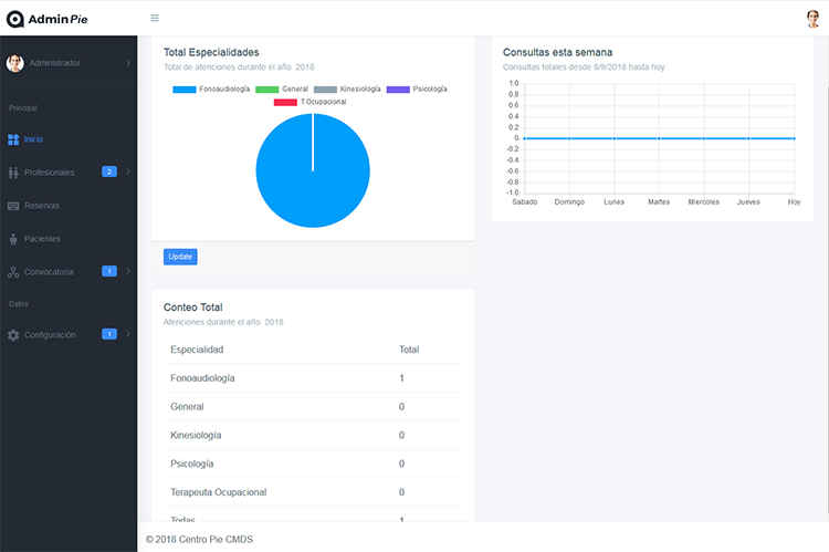 Plataforma de gestión para profesionales y centros médicos. Agenda horaria, reserva de pacientes, registro de ficha, solicitud de recetas, seguimiento de tratamientos, todo en línea.